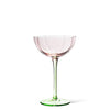 Our Flower Look Coupe Glass adds a delightful, feminine touch to your celebrations. Crafted in delicate pink, with a green base will impress your guests and elevate the ambience of any occasion. Also available in a flute or wine glass.