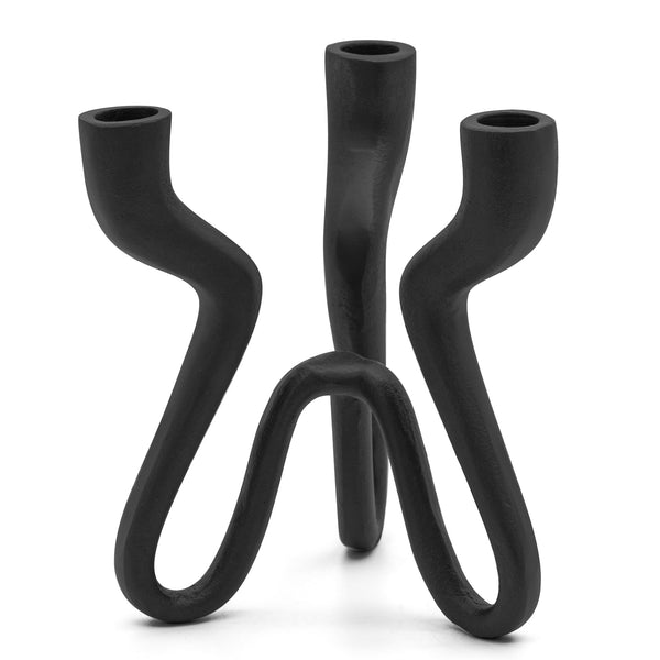 Trio Wavy Black Aluminum 8h" Candle Holder