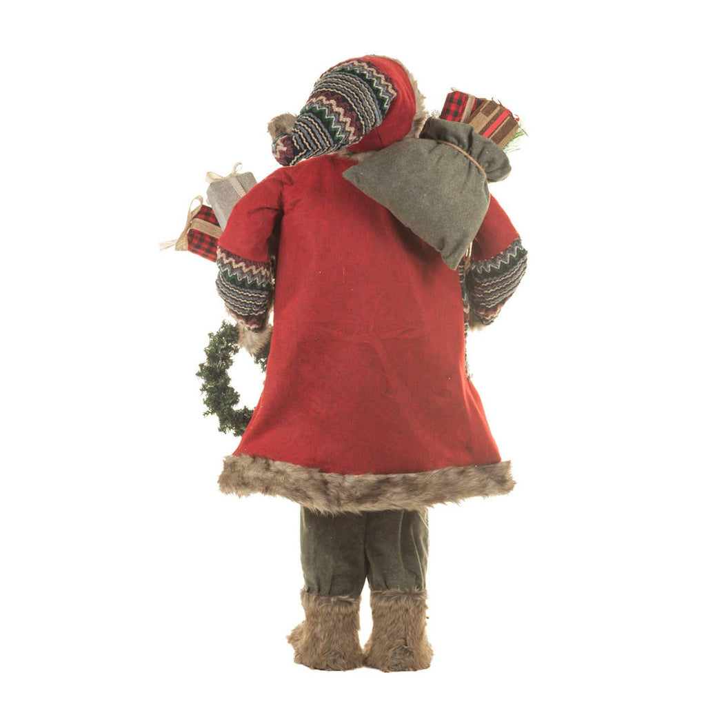 Celebrate the season with this impressive 49-inch cloth Santa figurine, dressed in classic red and gray and carrying festive gifts. A perfect collectible, it captures the charm of traditional Father Christmas styles from old-world to modern accents, making it a standout piece in any holiday display.