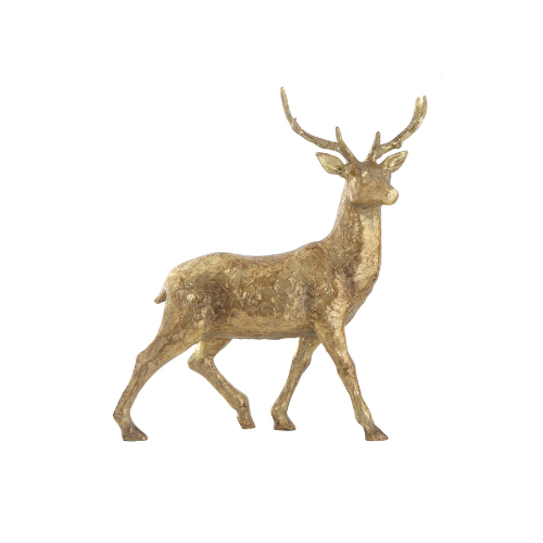 These resin deer figurines with gold finishes come in two different styles. Place on a table or shelf or add to a centrepiece for a bit of extra flair. Mingle with other holiday figurines like a snowman, Santa or miniature buildings.