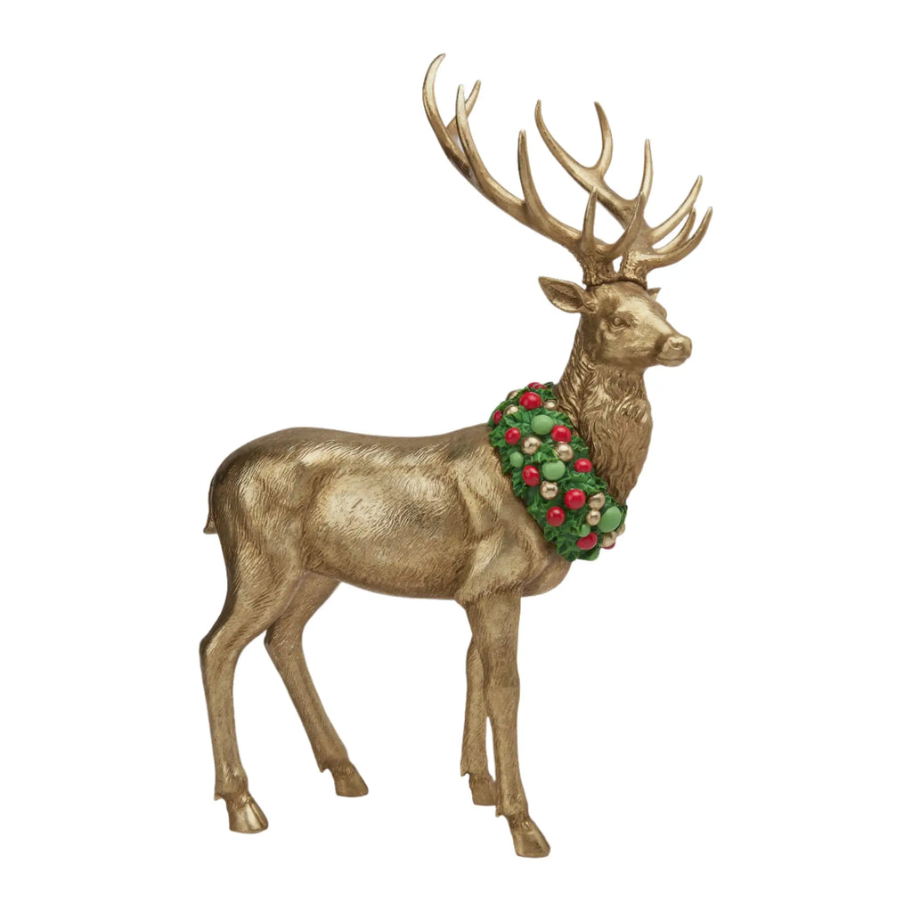 The Resin Standing and sitting Reindeer is a captivating addition to your Christmas decor. This unique piece, standing at 24.5", is meticulously crafted to embody the festive spirit. As a renowned wholesaler of home décor, we ensure our products enhance your home's aesthetic. This reindeer decoration, with its ornate holly detailing, brings a touch of festive charm to your decor.