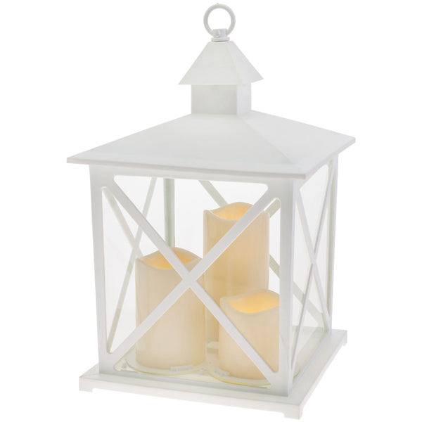 White crossed lantern with LED candles