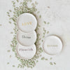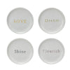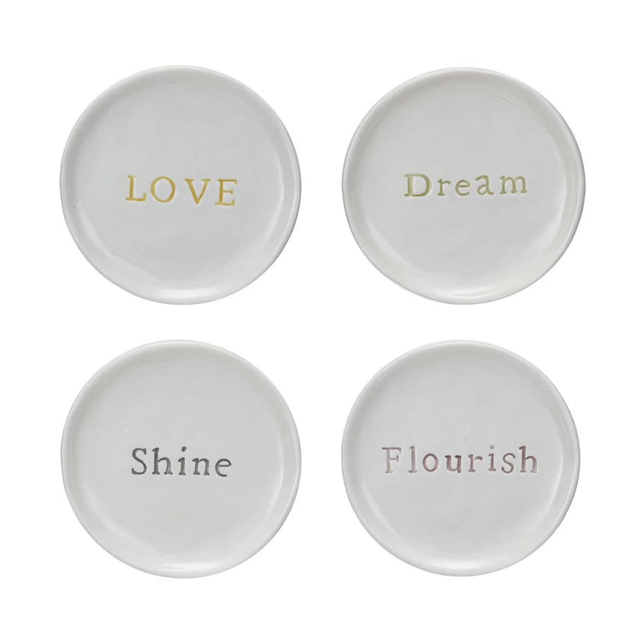 Add charm to your table with this 4" Round Stoneware Dish featuring elegant debossed words. Perfect for serving small treats, condiments, or trinkets, these stylish dishes come in four unique designs to complement any décor. Crafted from durable stoneware, they blend functionality with timeless appeal—ideal for everyday use or special occasions.