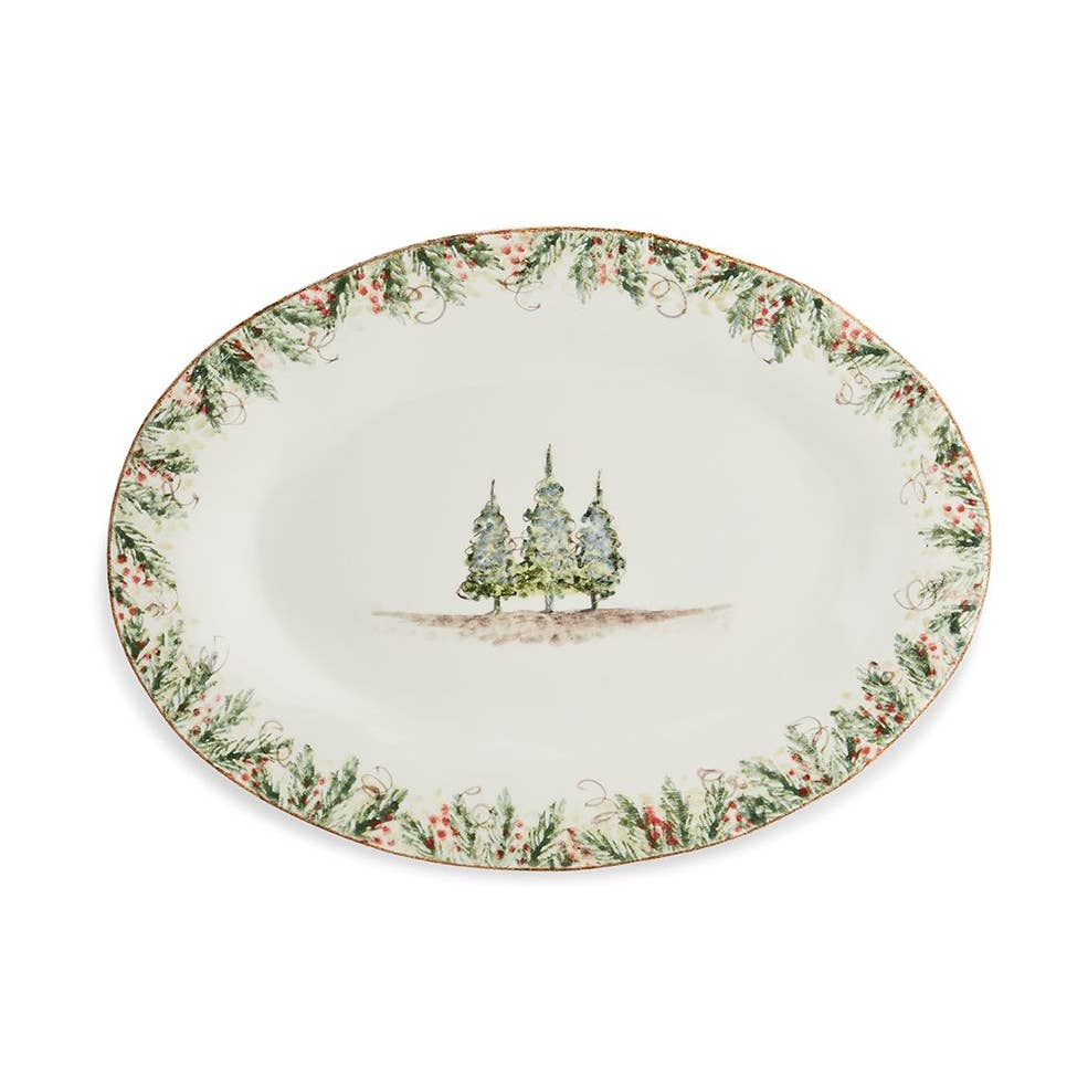 Our best selling Natale Collection is one of the most popular lines in the industry. Festive, yet soft, it features majestic snowy evergreens surrounded by enchanting pine boughs and winterberries. All hand painted, no two pieces are alike. Customers love its "wintery" look, perfect for Christmas celebrations but so beautiful throughout the winter season. Handmade and hand painted in Tuscany.