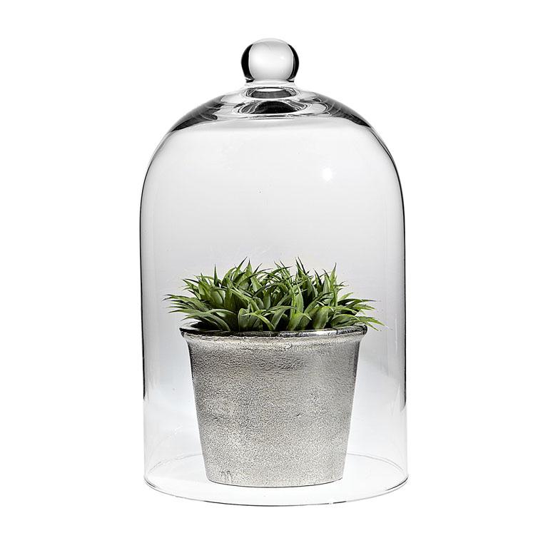 Keep your greatest treasures safe under this small classic shaped glass cloche!