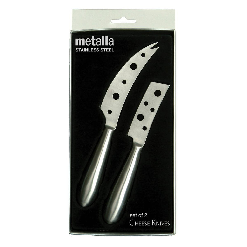 Ideal for cutting, slicing or cubing any type of cheese. The stylish handles and blades are crafted from quality 18/8 brushed stainless steel, with the handles permanently affixed to the blades. Each knife is specially designed with an open surface blade and elongated handle. The set comes in an eye-catching open window box.
