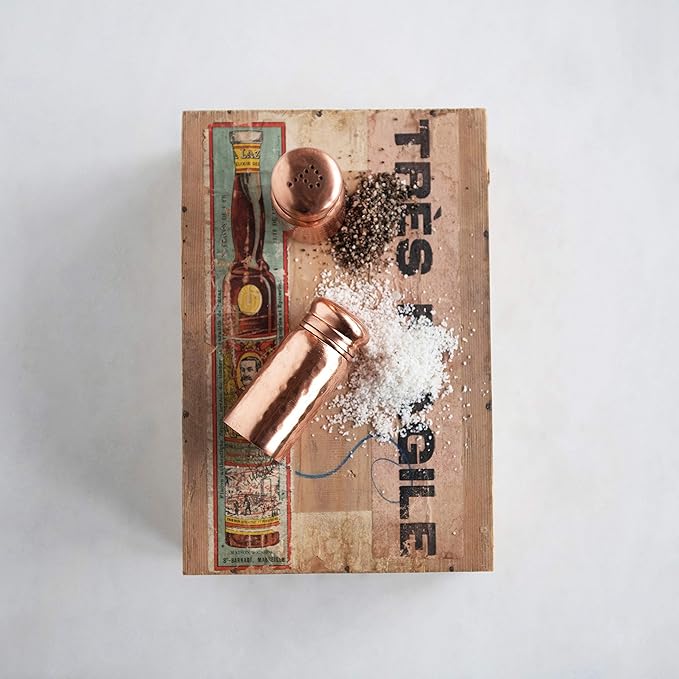 These stylish salt and pepper shakers are made out of steel. They are copper plated and have a beautiful hammered texture. These are perfect for nice dinner parties and add to a beautiful table setting. Perfect for a modern or vintage home. Comes as a set of 2.