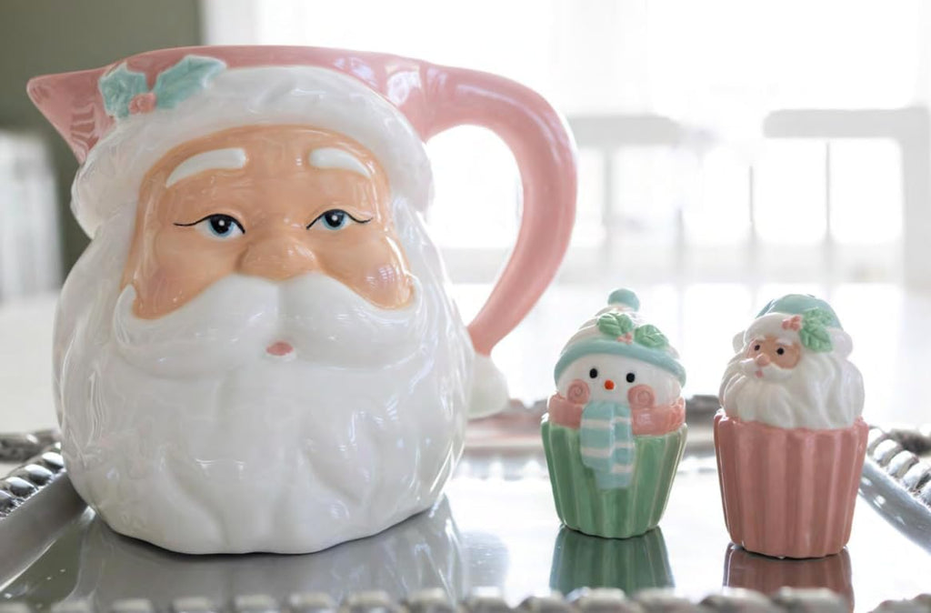Add a sprinkle of charm to the table with this pastel pair of glazed dolomite salt and pepper shakers, showcasing a cupcake-inspired Pink Santa and a snug little snowman in mint and blush tones. Crafted for whimsical tabletop appeal and everyday use, they bring playful personality to meals and make seasoning feel like a tiny celebration.
