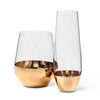 An elegant stemless goblet decorated with a wide base of gold to add sparkle to your celebrations, anytime of the year.