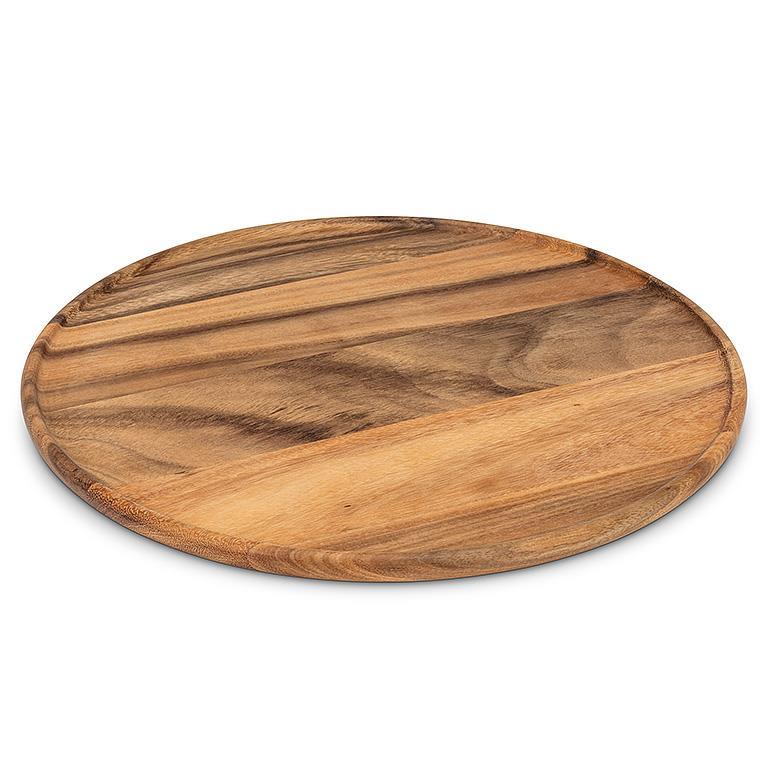 Bring a natural, rustic element to your entertaining with this handsome Large Round Tray with Lip. Crafted out of acacia wood, this circular tray features gorgeous wood grain finish that make it the perfect complement to your favourite selection of charcuterie, meats, cheeses and more.