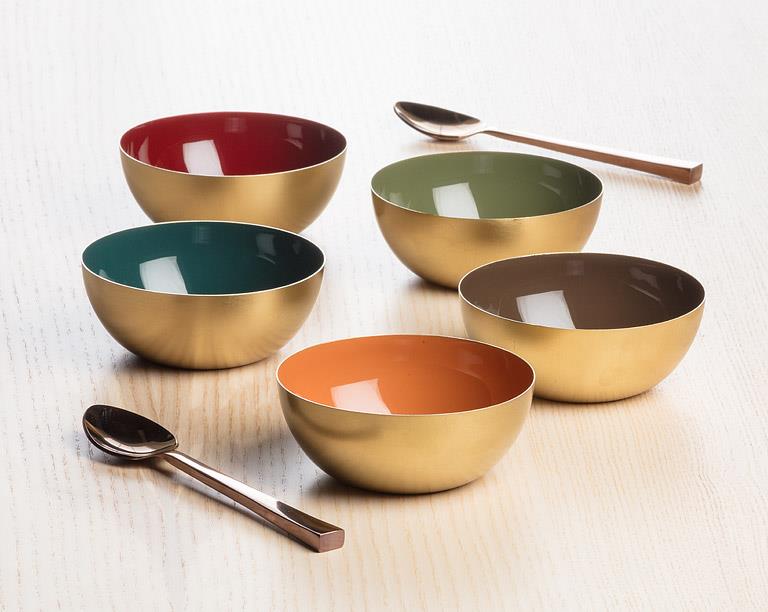 Transform your living space into a work of art with the help of this Mini Enamel Bowl in pumpkin. Crafted in India from metal with an eye-catching gold finish on the outside specially applied to ensure durability, and a beautiful high-gloss enamel interior, this is the perfect addition to any dinner party, get-together, or gathering. Food safe; hand wash with mild soap.