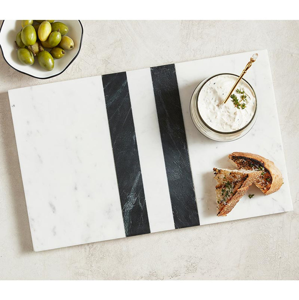 This Marble Stripe Tray is the perfect way to display your favorite treats, savory selections, or add a touch of elegance to any room décor.