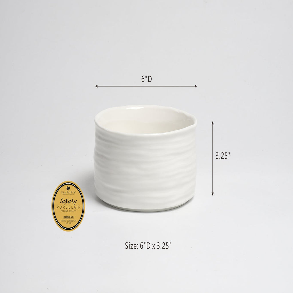 Small Bowl from our Le Blanc collection. This bowl is perfectly sized for serving condiments or snacks. It also looks great in combination with a platter for dips or sides. Artfully crafted this small bowl highlights the beauty of simplicity with clean lines and organic shapes. Versatile high-fired porcelain pieces that are microwave safe! Food safe, tarnish free, dishwasher safe, oven safe to 500°. Easy Care.