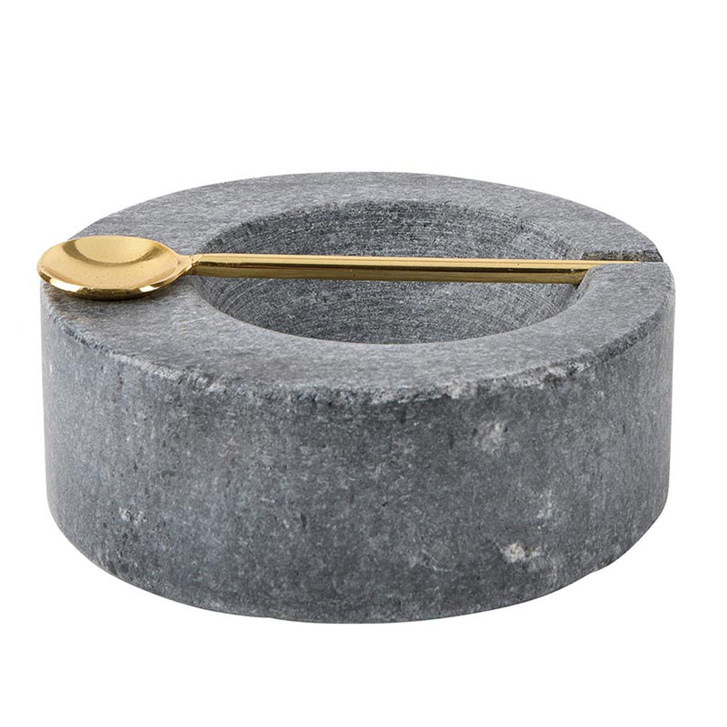 Elevate your space with the Gray Marble Pinch Pot, complete with a stunning gold metal spoon. This elegant and versatile piece seamlessly blends classic and contemporary design, making it a stylish addition to any room.