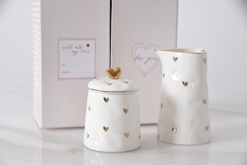 • Beautifully crafted in stunning white porcelain with delicate gold-tone heart decorations. Set a fabulous brunch table, or serve high tea with these essential pieces