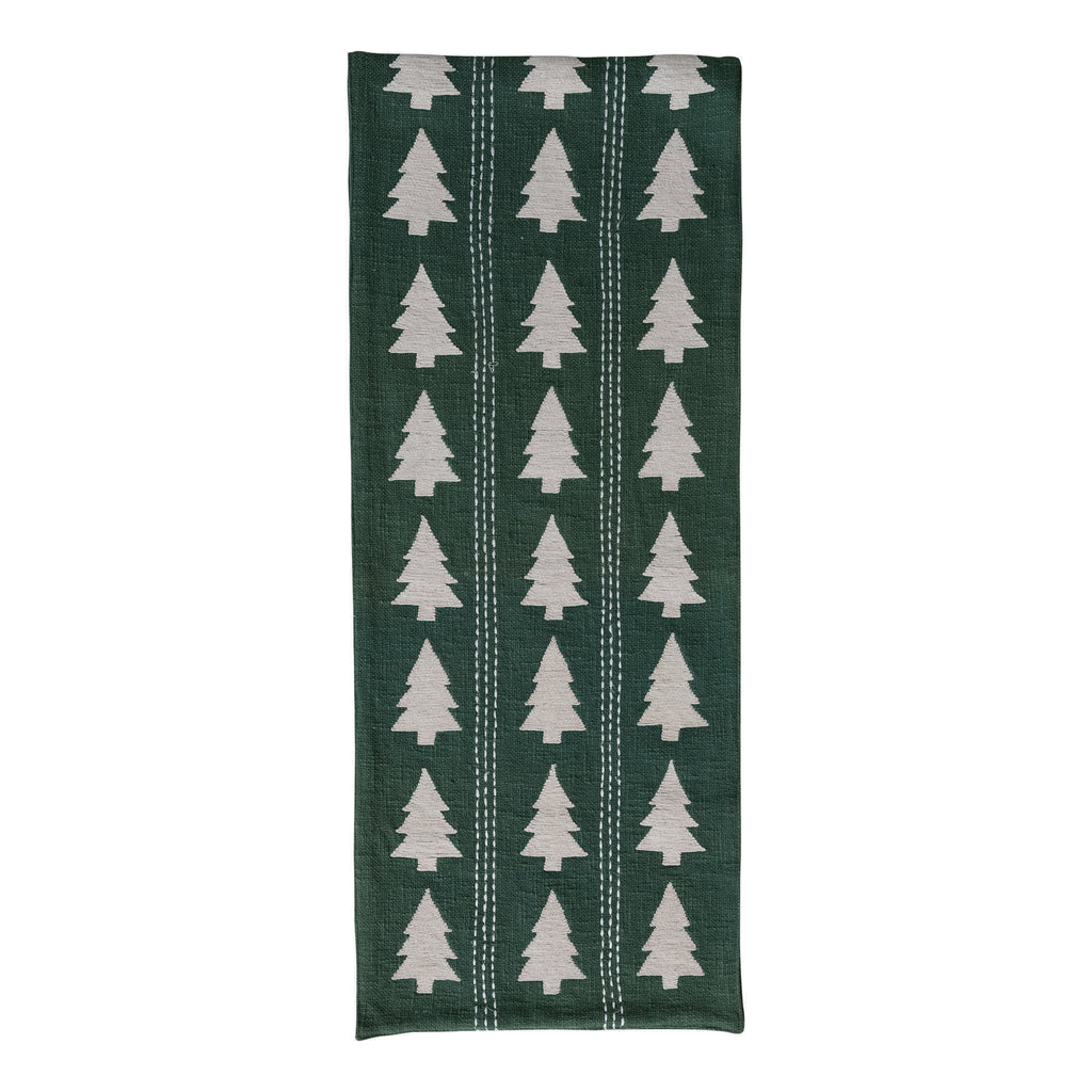 Add rustic charm to your table with this slub table runner featuring an embroidered trees pattern in green and natural tones. Detailed stitching adds texture and depth, making it a beautiful accent for seasonal gatherings or everyday décor. At 72 inches long, it fits most tables with ease.