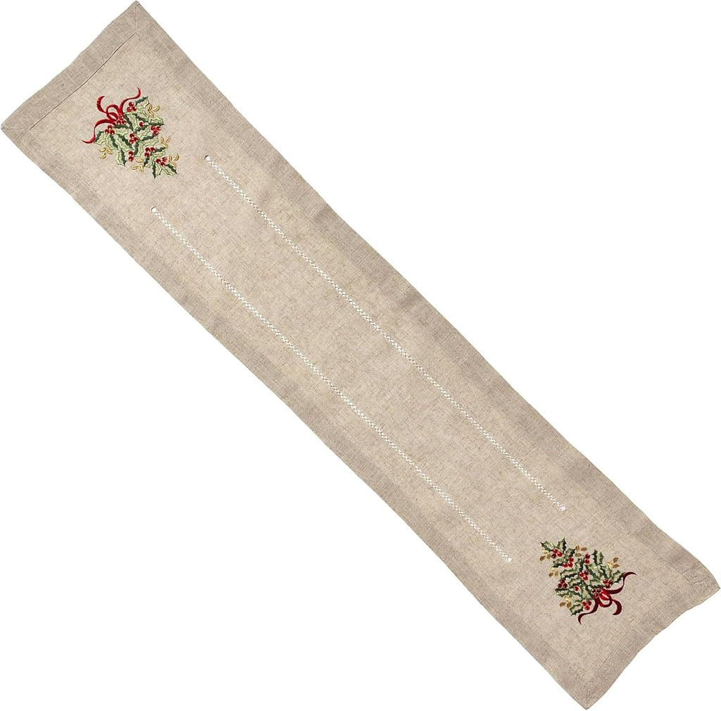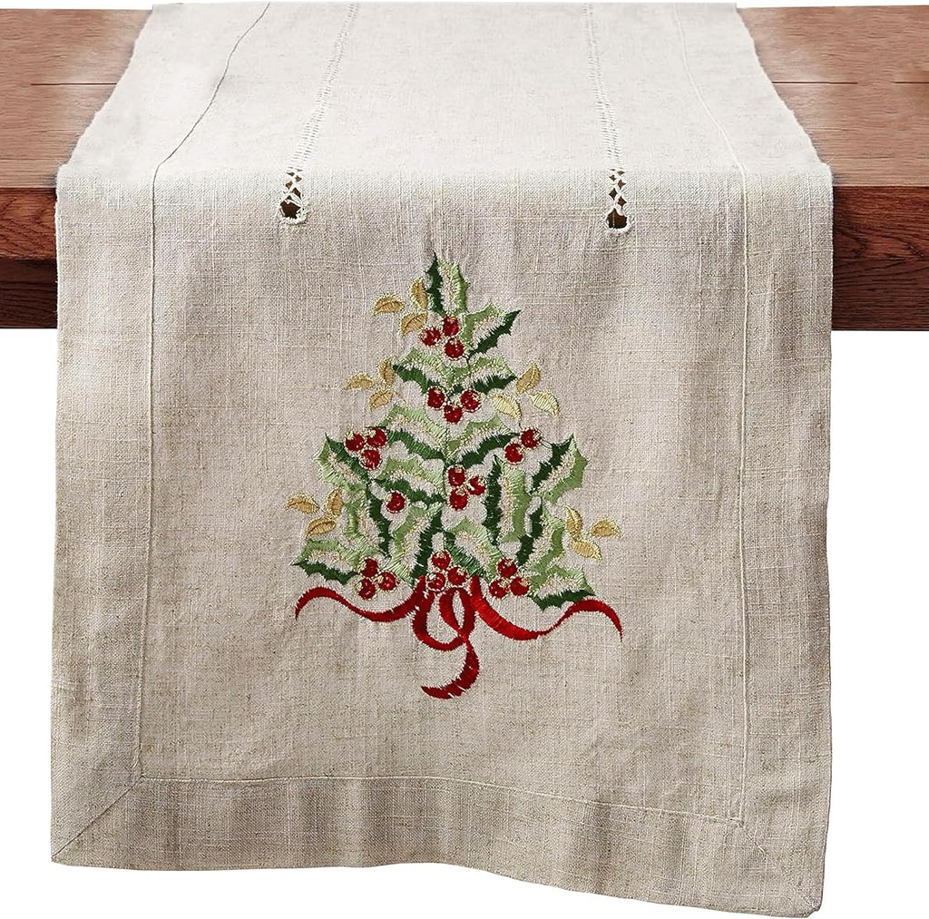 Featuring a simple, yet festive design, this embroidered table runner is a wonderful addition to your holiday décor. It serves as the perfect backdrop for stylish tabletops for various occasions. It's easy to pair with a wide range of dinnerware and serve ware.