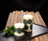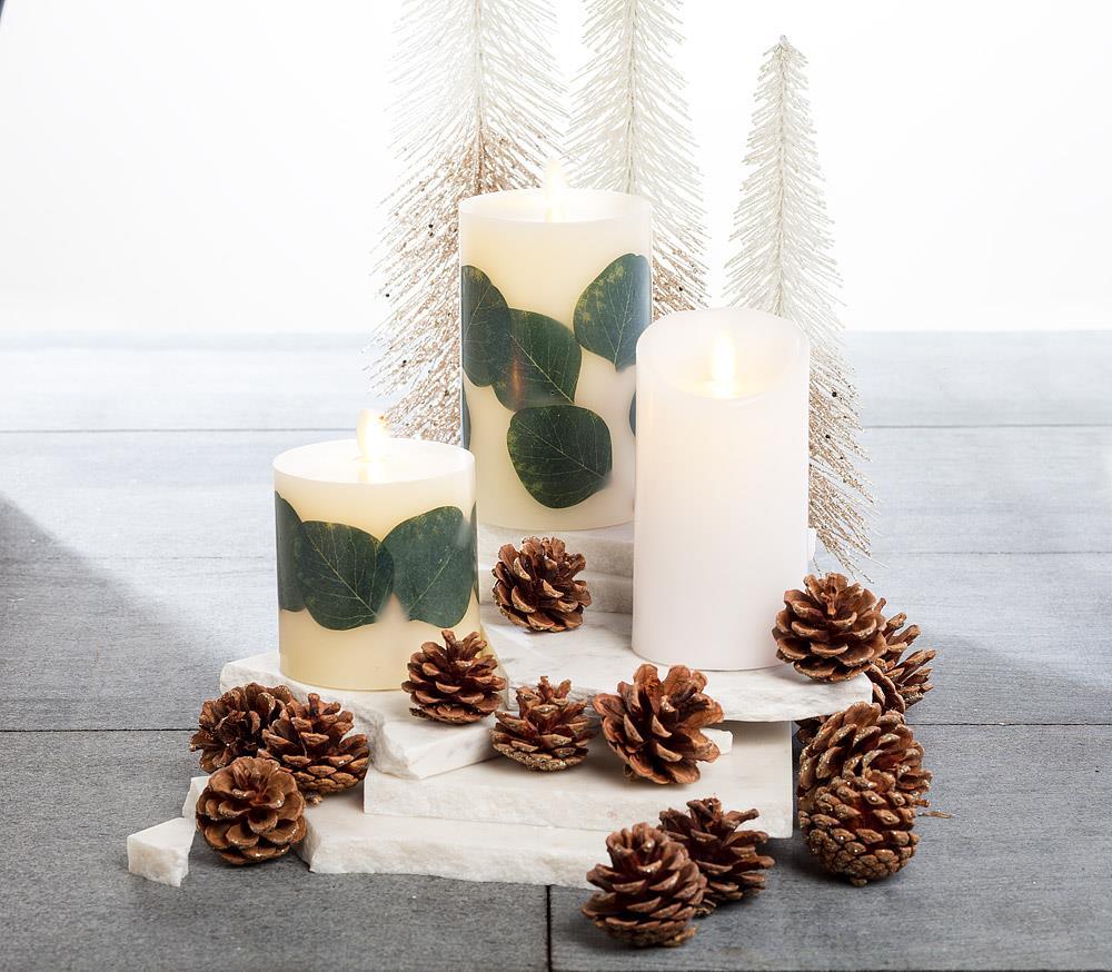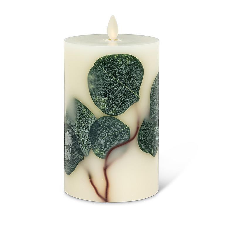 Enjoy the warmth of candlelight without the flame with this medium-sized Eucalyptus LED Flameless Candle. Crafted out of wax and plastic, this candle features a Eucalyptus leaf motif atop its simple ivory base to complement any style of decor. Powered by 2 AA batteries, this Reallite LED candle provides up to 150 hours of light without any dripping wax or mess.