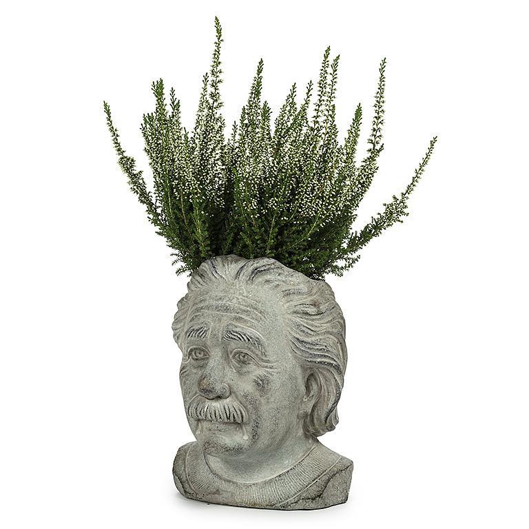 No need to break out your calculator to solve your decorating problems – ;because this beautifully sculpted Small Einstein Head Planter is sure to give you all the right answers. Crafted out of cement, there's no better place to let your blooms blossom than this famous physicist's head!