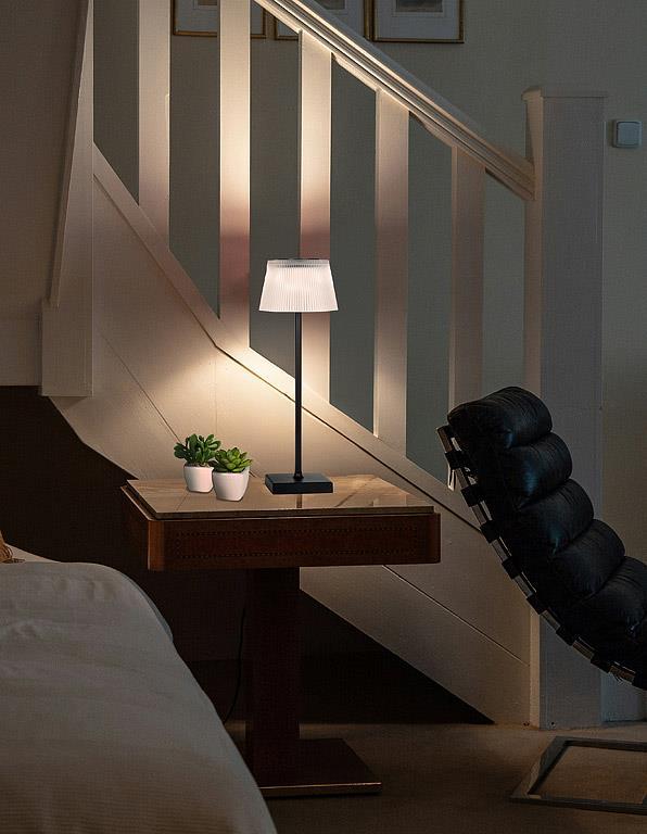 Enhance your home or outdoor space with our Fluted Frost Shade LED Outdoor Table Lamp, bringing modern style and portable brilliance to your space. With a waterproof design, this portable light is perfect for both indoor and outdoor use. With USB rechargeability, enjoy convenient lighting that adapts to your lifestyle. This is a water resistant style with a durable outdoor finish and a IP54 rating. Other colours available.