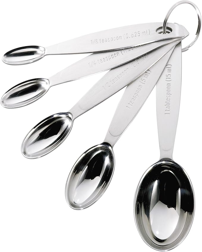Capacity: Spoons: 1/8, ¼, ½, 1 tsp, 1 tbsp