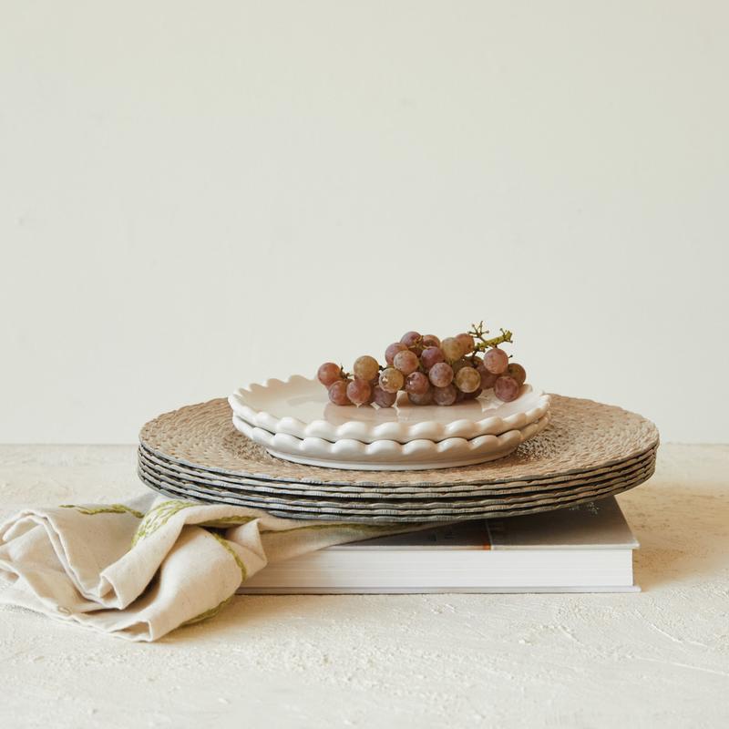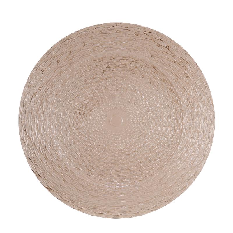 Add texture and elegance to your table setting with this lightweight plastic charger featuring a stylish woven pattern. Durable and reusable, it's perfect for layering under dinnerware to enhance both everyday meals and special occasions.