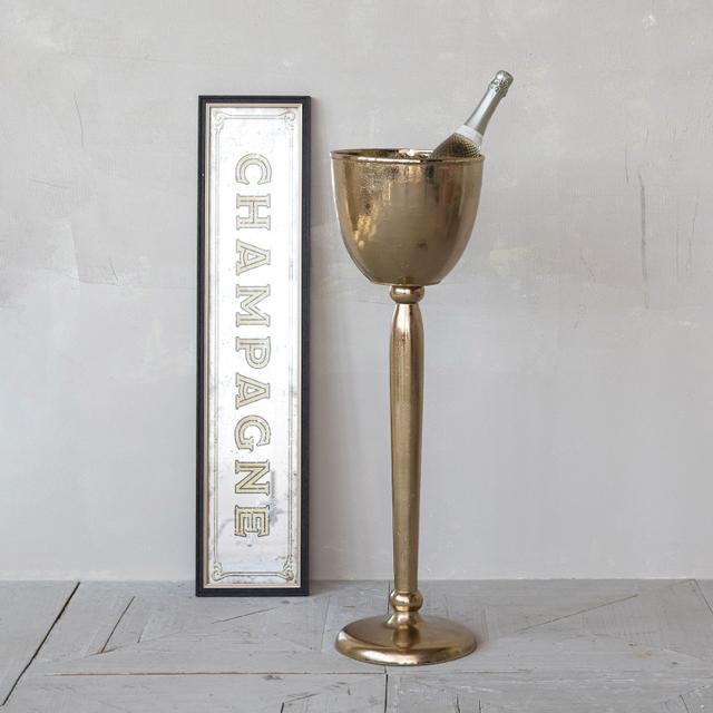 Add timeless elegance to your space with this framed wall décor featuring an antique-style "Champagne" mirror. Crafted from plastic and MDF with a striking black and gold finish, it brings a touch of sophistication and vintage charm to any room.