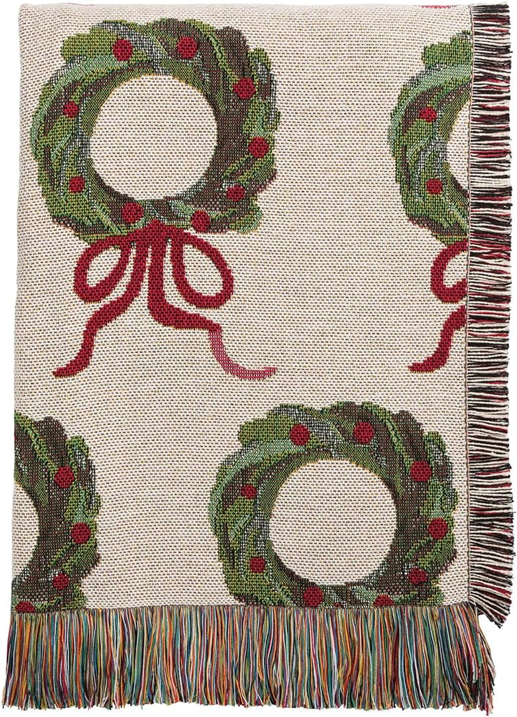 Elevate your space with our Wreath Jacquard Blanket, a beautifully woven cotton-blend throw featuring an elegant, intricate design. Measuring 63" x 55", it’s perfect for cozying up on the couch or adding a stylish layer to your bed. Finished with a charming fringe trim and made from a durable 76% cotton / 24% polyester blend, this blanket offers lasting softness and timeless appeal, an ideal accent or thoughtful gift.
