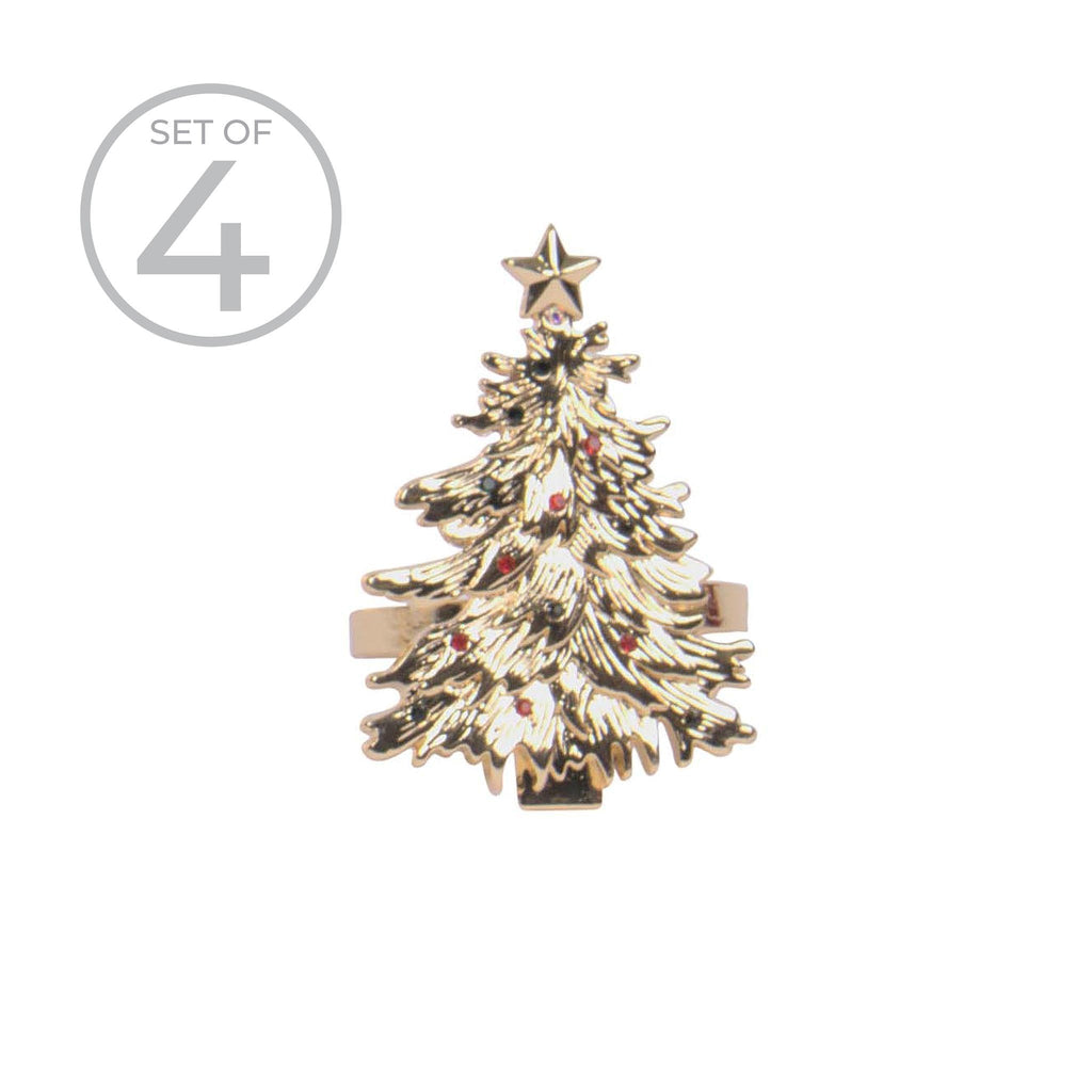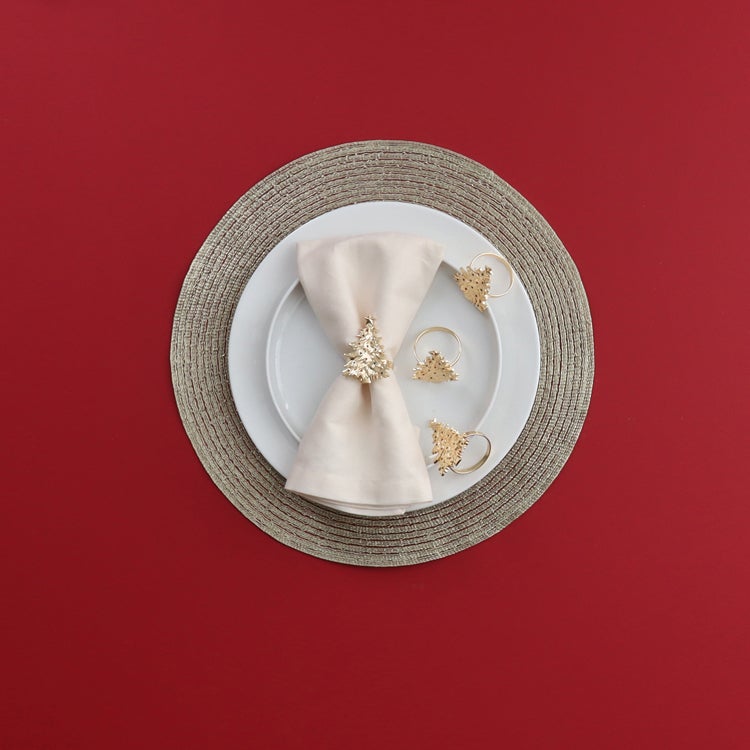 Add a festive shimmer to your holiday table with this elegant Golden Tree Napkin Ring Set. Crafted from durable metal and finished in a radiant gold tone, each napkin ring features a beautifully detailed tree design that brings warmth and charm to your seasonal gatherings.