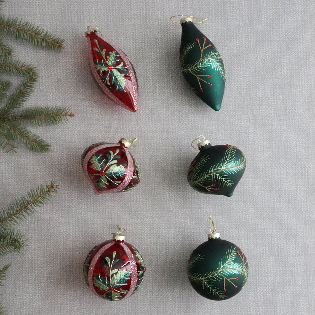 Add elegant sparkle to your holiday decor with the Frosted Holly Glass Ornament collection. Crafted from beautifully textured glass, each ornament brings a refined, festive touch to your tree. This assortment includes 4 of each shape, making it perfect for creating a cohesive and stylish holiday look. A timeless holiday accent you'll enjoy year after year.