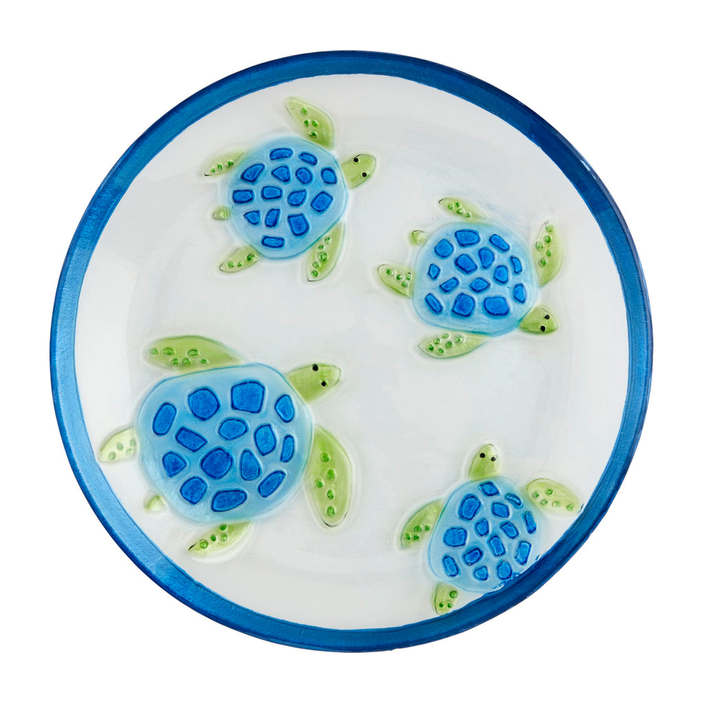 Glass Turtle Platter. This exquisite hand-painted glass platter features a stunning turtle design, perfect for adding a touch of elegance to any table setting. With a diameter of 12 inches, it offers ample space for serving appetizers, desserts, or main dishes. The vibrant colors and intricate details make it a standout piece for entertaining guests or as a decorative accent in your home. Crafted from high quality glass, this platter is both durable and beautiful, making it a versatile addition to your dining collection. Ideal for ocean-themed decor or as a unique gift for turtle enthusiasts.