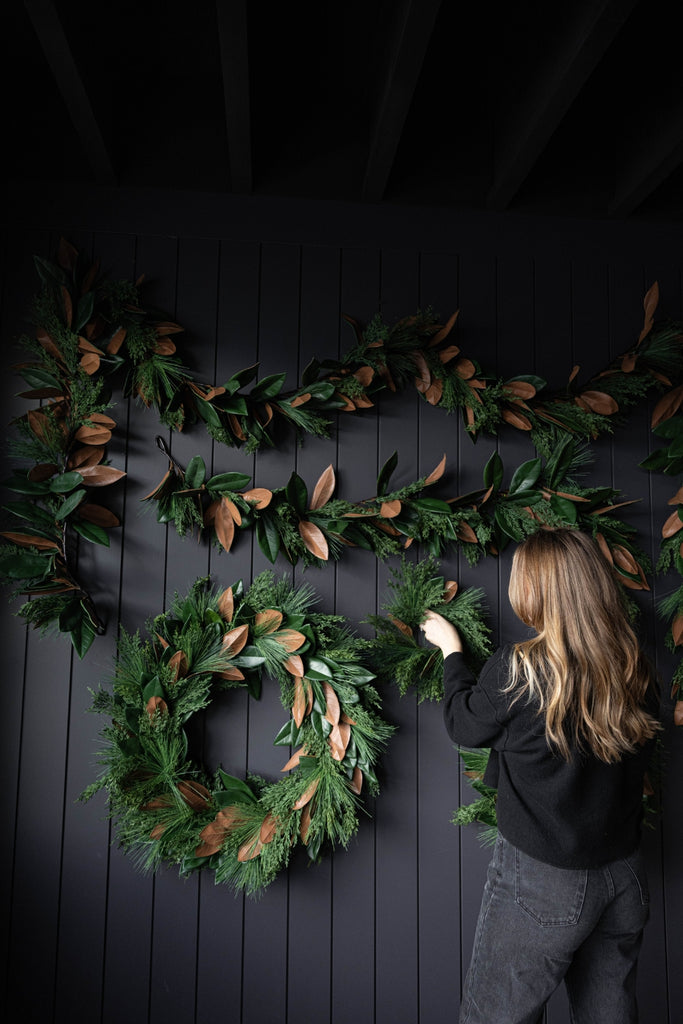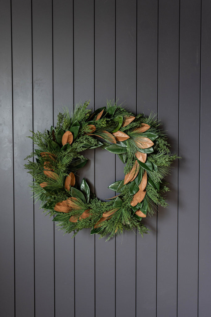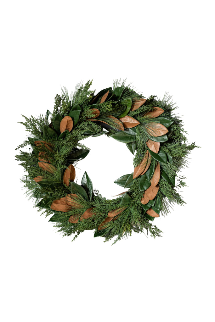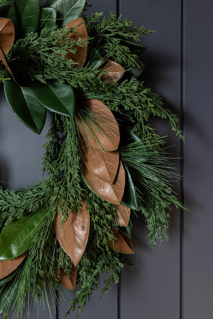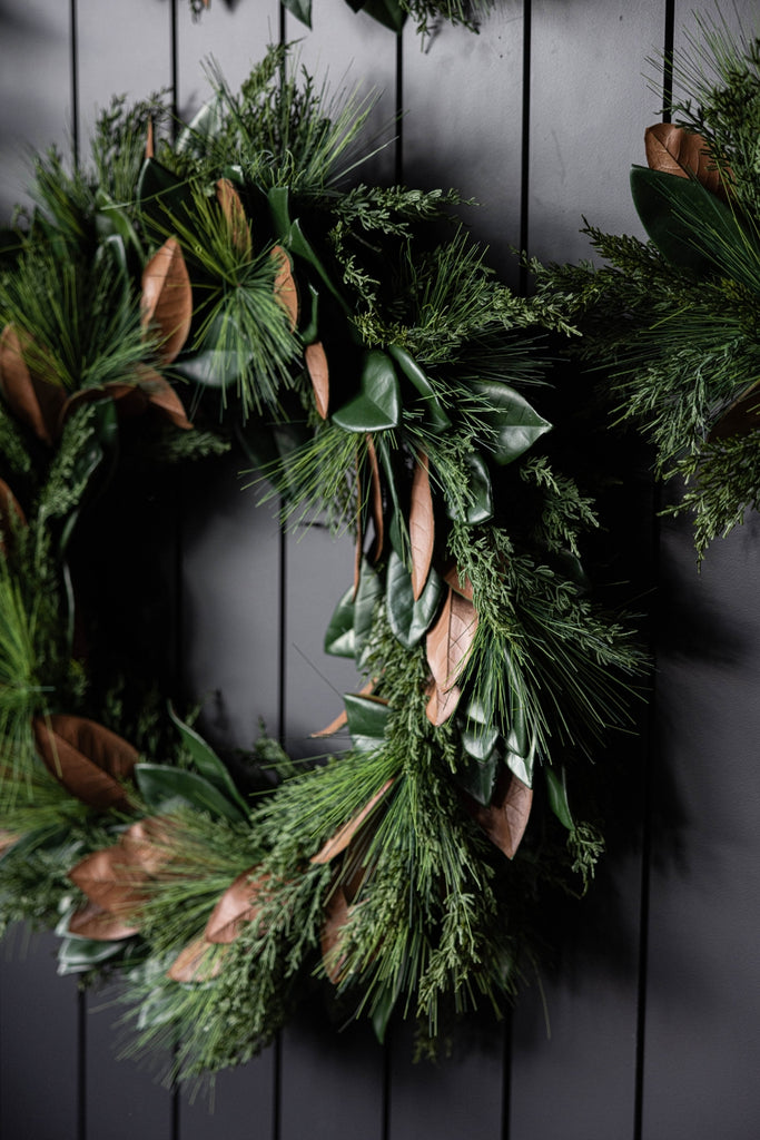 Magnolia Norfolk Cypress Mixed Real Touch Wreath by Luxe B Co. is our high-quality, realistic "Real Touch" holiday decoration. Natural Touch technology makes the Wreath look realistic by giving it a lifelike appearance and feel. Luxe B Co. offers a variety of holiday decoration products, including Norfolk Pine Wreaths, Norfolk Pine Stem Picks, Vintage Bells, and Velvet Ribbons. These items can further complement your holiday decor. Real Touch technology (advancement in the Faux Flower and greenery industry for a realistic look and feeling ) Magnolia Norfolk Cypress Mixed Real Touch Wreath branches can be easily maneuvered for styling.