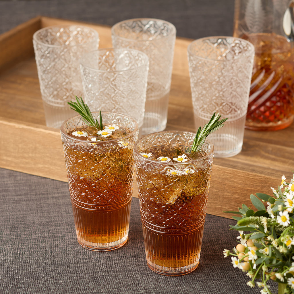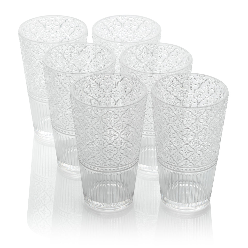 Add timeless elegance to your table setting with the Victoria Clear Acrylic DOF Glasses. Designed with a sophisticated Clear tone and intricate embossed detailing, these glasses bring a refined and luxurious touch to your drink ware collection. Crafted from durable break-resistant acrylic, these tumblers are safe for indoor and outdoor entertaining, making them perfect for family dinners, festive gatherings, and patio parties. With a generous 16 oz capacity, they’re ideal for serving a variety of beverages, from cocktails and mock-tails to water and iced tea. Lightweight yet sturdy, these glasses offer the look of glass without the fragility, combining practicality with style. Dishwasher safe for effortless cleanup, they’re as convenient as they are beautiful. Not microwave safe. Elevate your dinnerware and create unforgettable moments with these versatile and stylish tumblers.