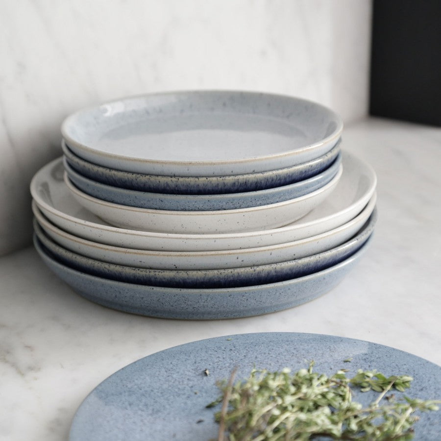 These charming Small Studio Blue Coupe Plates are perfect for smaller portions or for use at a dinner party. This 4 Piece Small Coupe plate set is presented in four tonal glazes as a mix and match set. Perfect as a plate to use every day or a piece for serving, the coupe shape gives you depth and the taller sides make them ideal for dishes with more liquid.