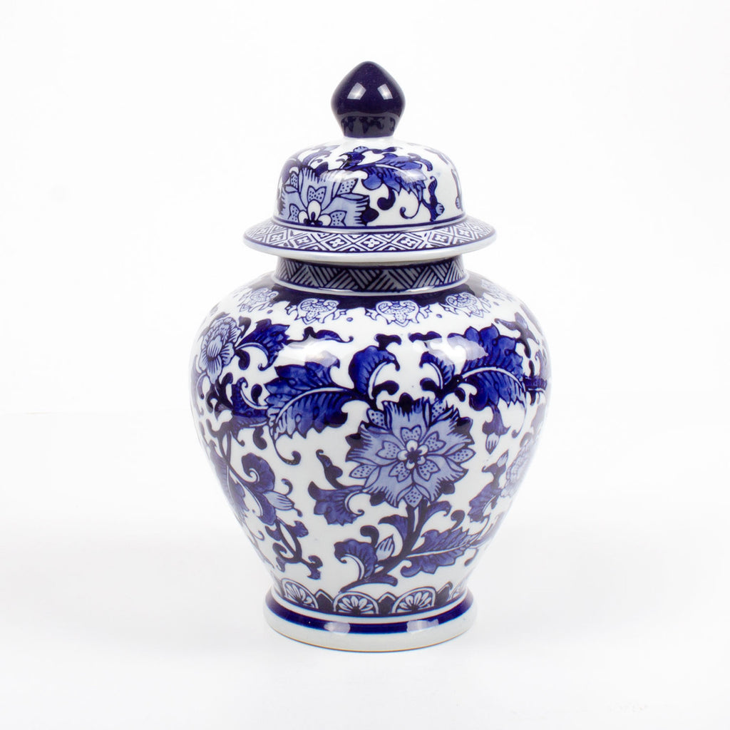 The Blue Chinoiserie Ginger Jar - Large is a chic and elegant statement piece for any home. Featuring detailed porcelain construction, spot clean recommended, and inspired by French chinoiserie this sophisticated item will pair perfectly with any home décor style. With its timelessly classic design, it can be displayed alone or paired with other chinoiserie pieces to make a stunning collection. Add freshness to your interior style when you display a bouquet of flowers from the local farmers market, or simply adorn the piece all on its own for instant sophistication. This stately blue coloured jar impresses with its beauty and quality craftsmanship – designed in the U.S., imported, and sure to lend charm to any artfully arranged setting. Bring timeless elegance into your home with the Blue Chinoiserie Ginger Jar - Large today!