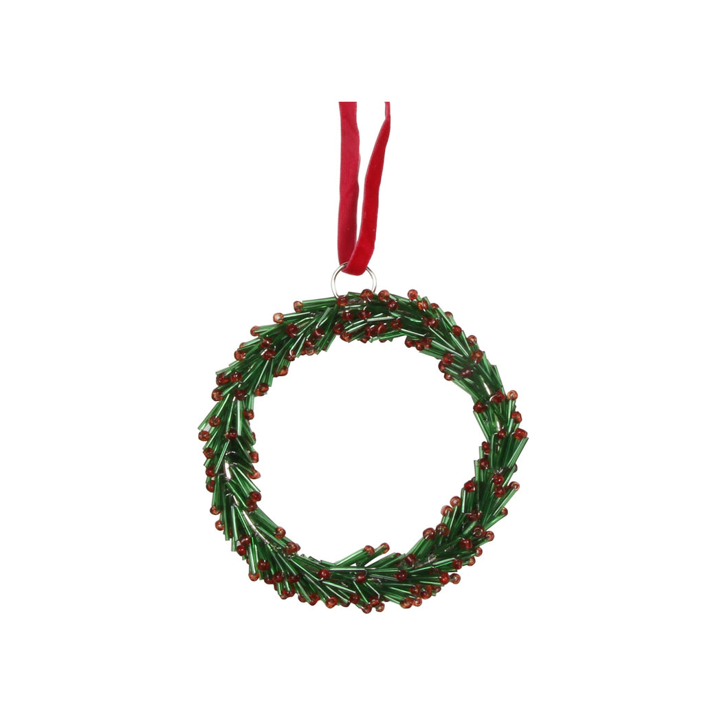 Add a playful pop to your holiday decor with this hand-painted beaded wreath ornament. Crafted from polypropylene and metal, it brings festive charm and unique texture to any Christmas tree. A fun, eye-catching addition to your ornament collection.