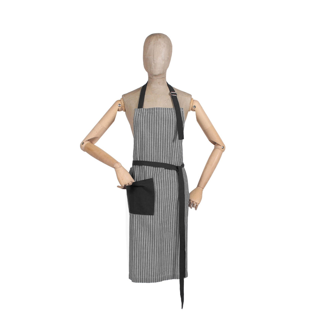 Add style and functionality to your kitchen with this timeless pinstripe apron. Made from durable cotton and accented with PVC faux leather, it combines everyday practicality with a modern, refined look.