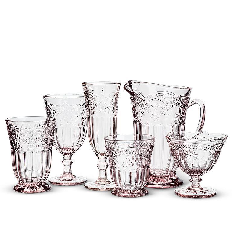 Welcome spring and party guests alike with this flower pedestal dish crafted in classic antique style. An Abbott Collection exclusive, this pink vintage-style glass features exquisite crafting and intricate details that will help set the mood for your next garden party or special occasion.