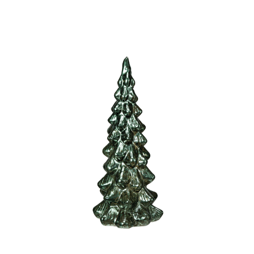 Add festive sparkle to your home with these mercury glass trees, each illuminated with a soft LED light. Perfect for mantels, tabletops, or holiday displays, they bring a warm, elegant glow to any space.