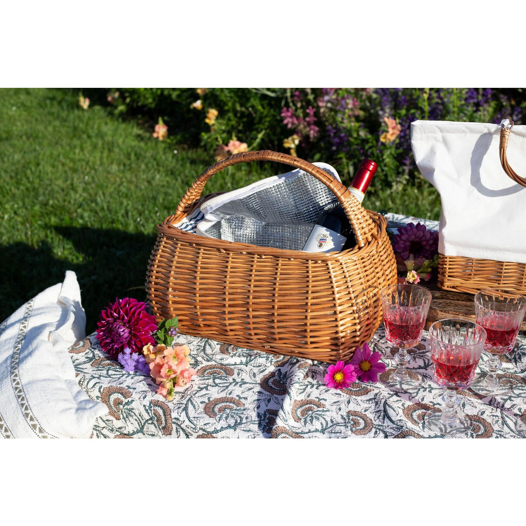 Enjoy outdoor adventures in style with this Rectangular Willow Picnic Basket, designed with a classic woven look and the added convenience of a built-in cooler lining. The insulated interior keeps food and drinks fresh, making it perfect for picnics, concerts, beach days, and weekend getaways. Practical, charming, and ready for any outing.